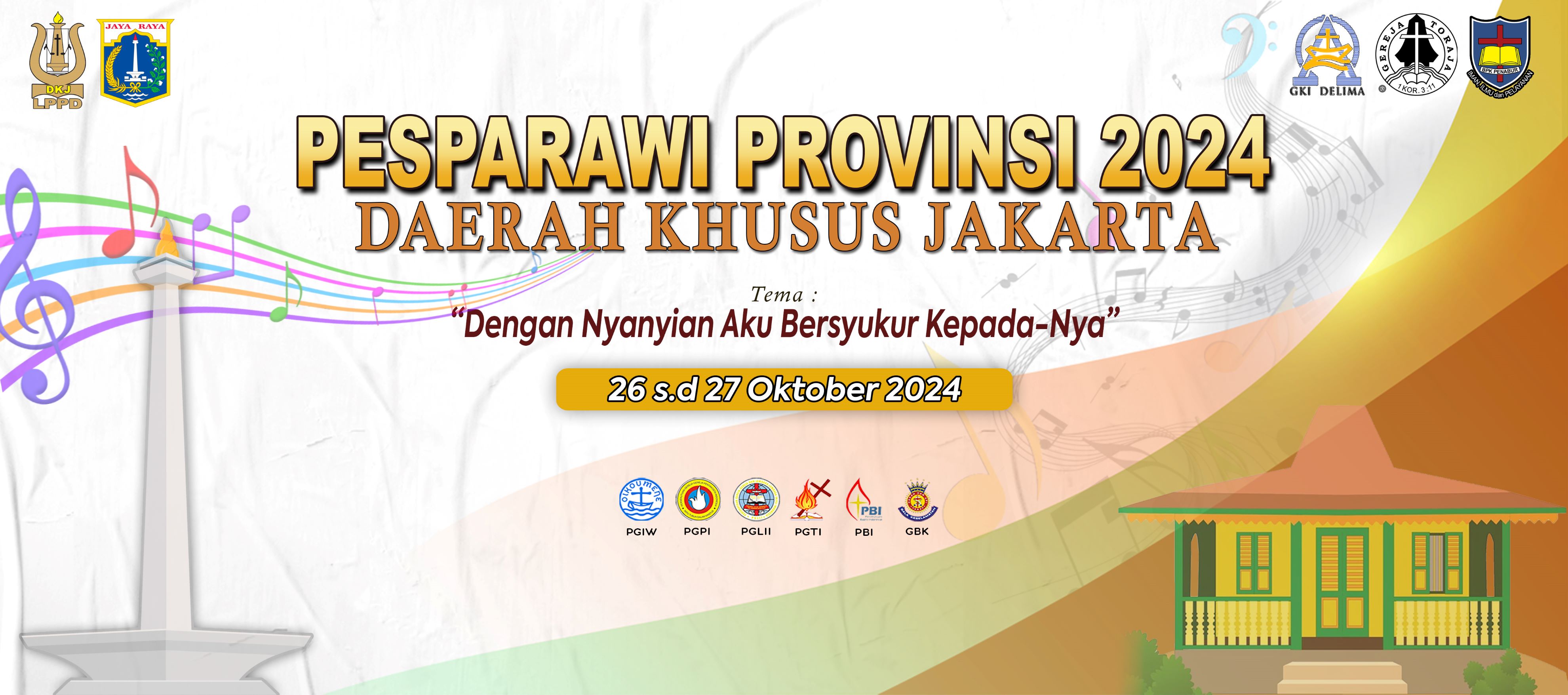 Dengan penuh Sukacita, LPPD DK Jakarta mengdakan acara Pesta Paduan Suara Gerejawi (PESPARAWI) yang diselenggarakan pada: Sabtu- Minggu, 26-27 Oktober 2024